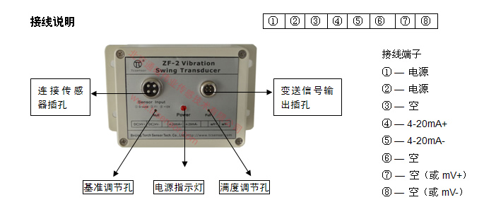 振动变送器面板上的基准和满度调节,便于用户现场重新调整。